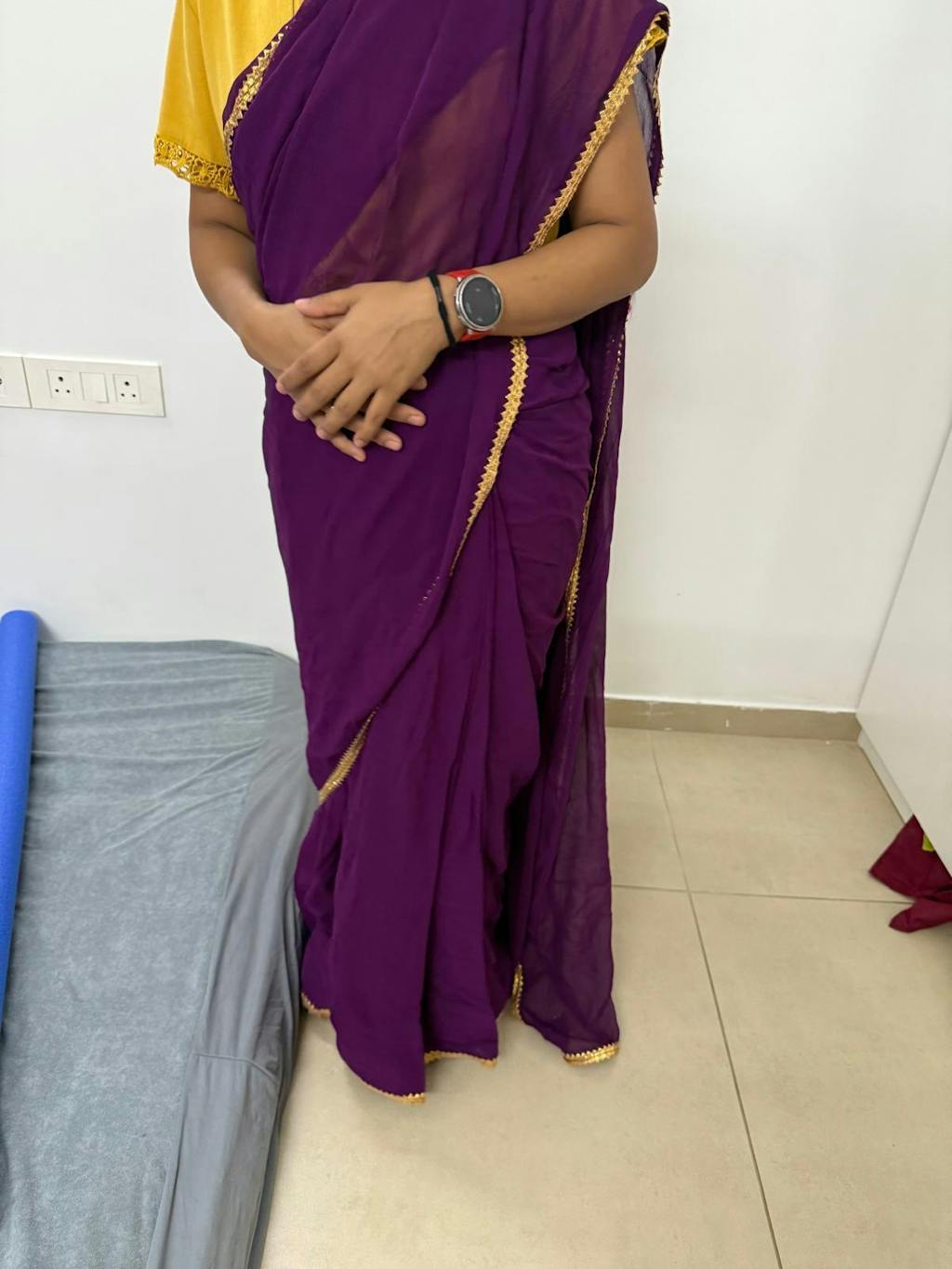 ridhi sarda Do not order pre-pleated saree from Binks. The pallu is too long for the size ( I had ordered small size)