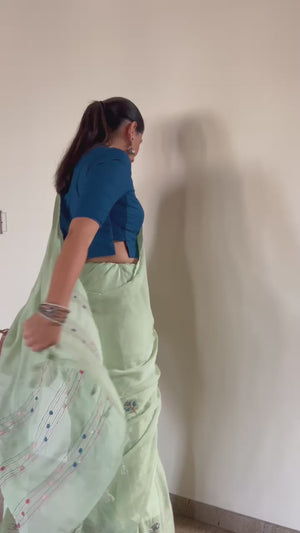 Bold and striking, the Saloni x Rozaana blouse in Cranberry Red brings a statement-worthy elegance to your saree wardrobe. Designed in a breathable cotton-linen blend and lined with soft cotton, it ensures ease and comfort throughout the day. The stylised neckline with delicate thread work adds a touch of sophistication, while the elbow-length sleeves create a classic silhouette. Featuring a front hook-and-eye closure and a closed back for a seamless fit, this blouse is ideal for both work and casual occasions.