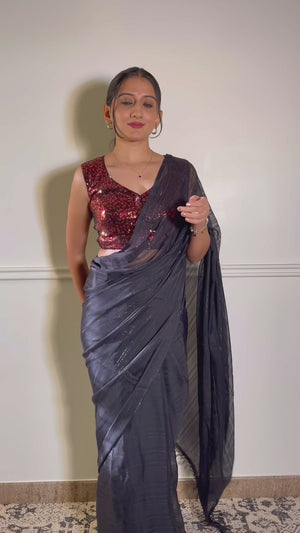 The Aadhya blouse in Red Sequin is designed to turn heads with its delicate curved V-neckline and sleek sleeveless finish. The sparkle of sequins is tastefully balanced by its clean lines and front hook-and-eye opening, making it an effortless yet bold addition to your festive wardrobe.