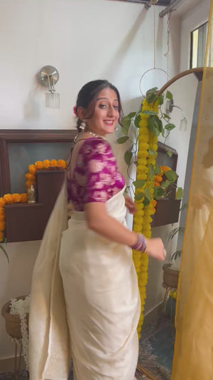 Zaina x Tyohaar | Elbow Sleeves Satin Viscose Saree Blouse in Violet Meenakari Fabric